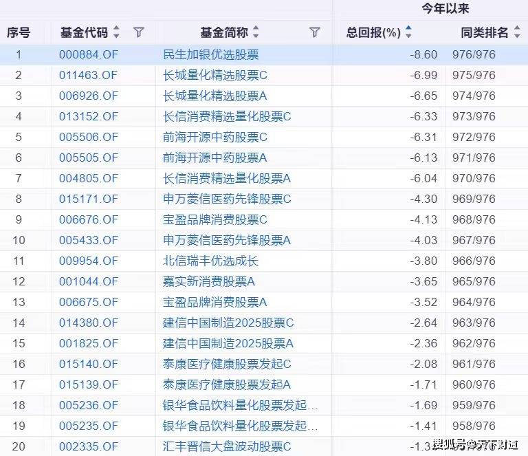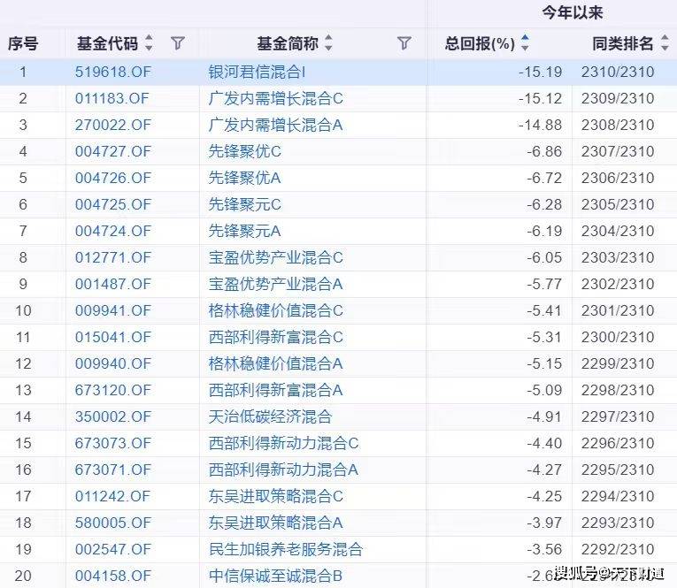 如果说二季度调仓换股押中风口的基金,多少有些偶然因素,那么,今年以来排名靠后的基金,堪称凭“实力”垫底。