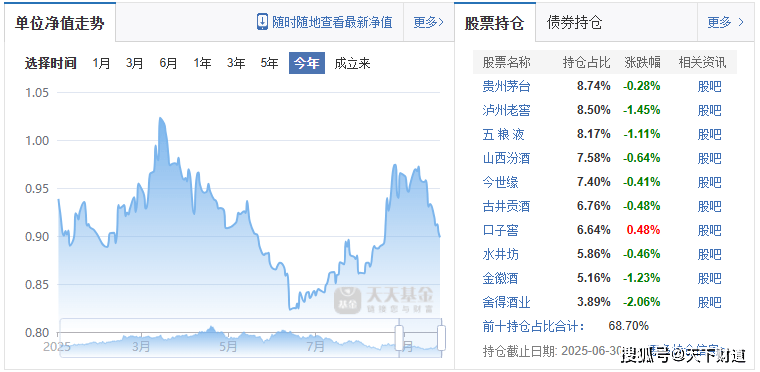 而且从2022年起,该基金的前10大重仓股就一直是白酒企业,期间历时3年多,尽管净值表现一直不佳,但至今也未看到有明显改变的迹象。