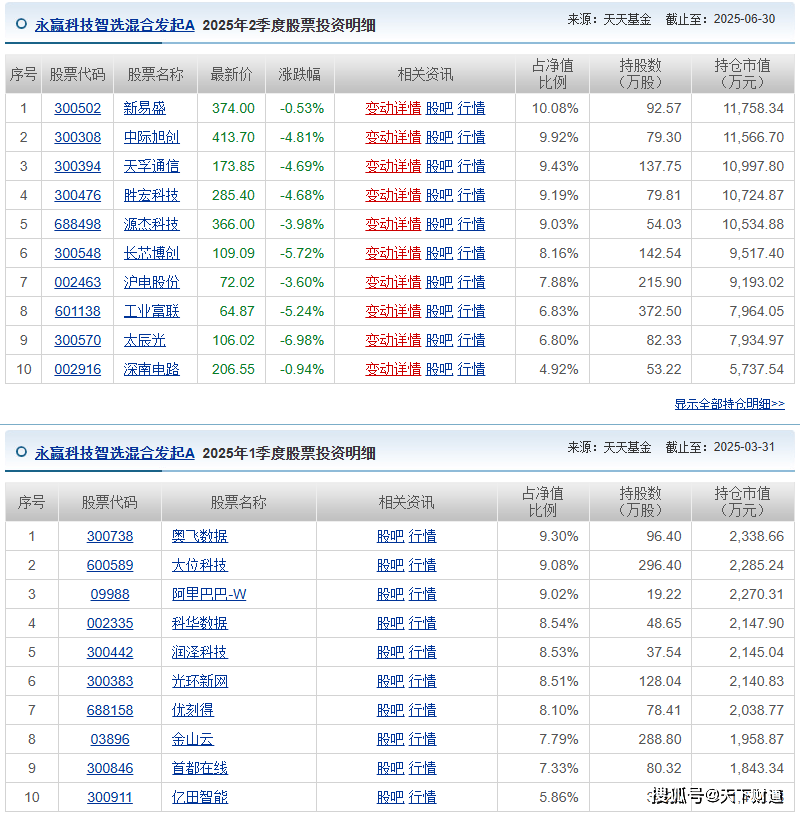 而恰恰在上述股票启动前,也就是今年二季度期间,永赢科技智选混合大范围进行了调仓换股。不是换几只股票,而是前十大重仓股,在二季度内全部换掉。