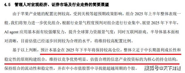 这并非偶然所致,该基金在中报中就曾明确表示要保持较高仓位,聚焦具有竞争优势且估值合理信息产业标的。