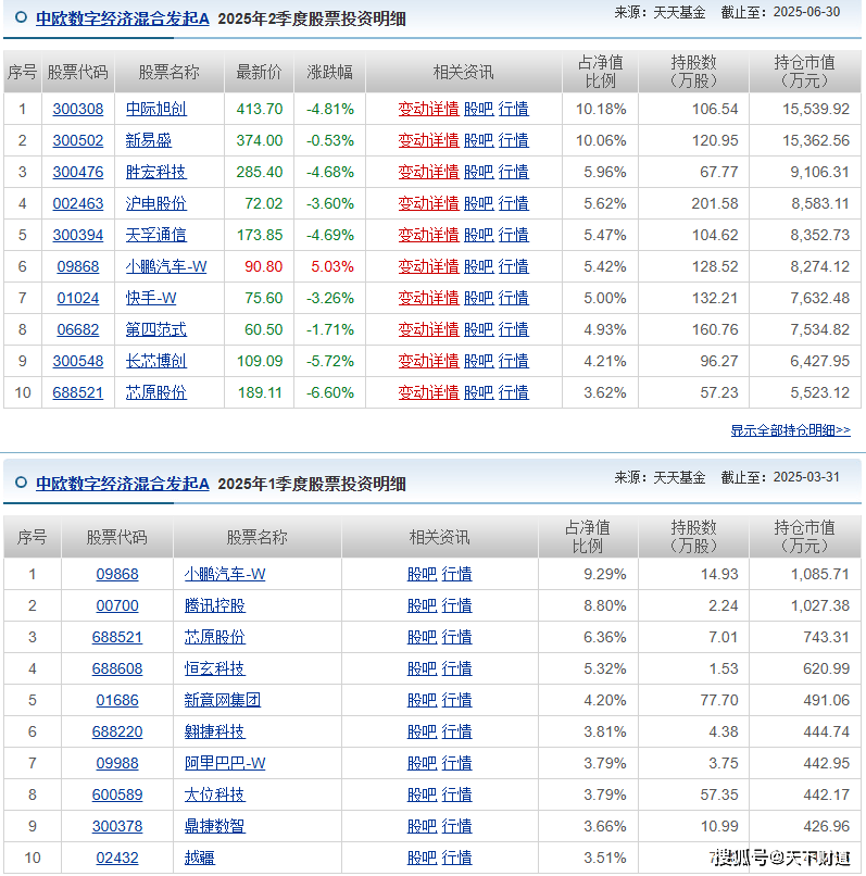 当然,押中上述大牛股的,还有其它基金。比如,排名第二的中欧数字经济混合发起A,其前10大重仓股与第一名共有6只股票重合。