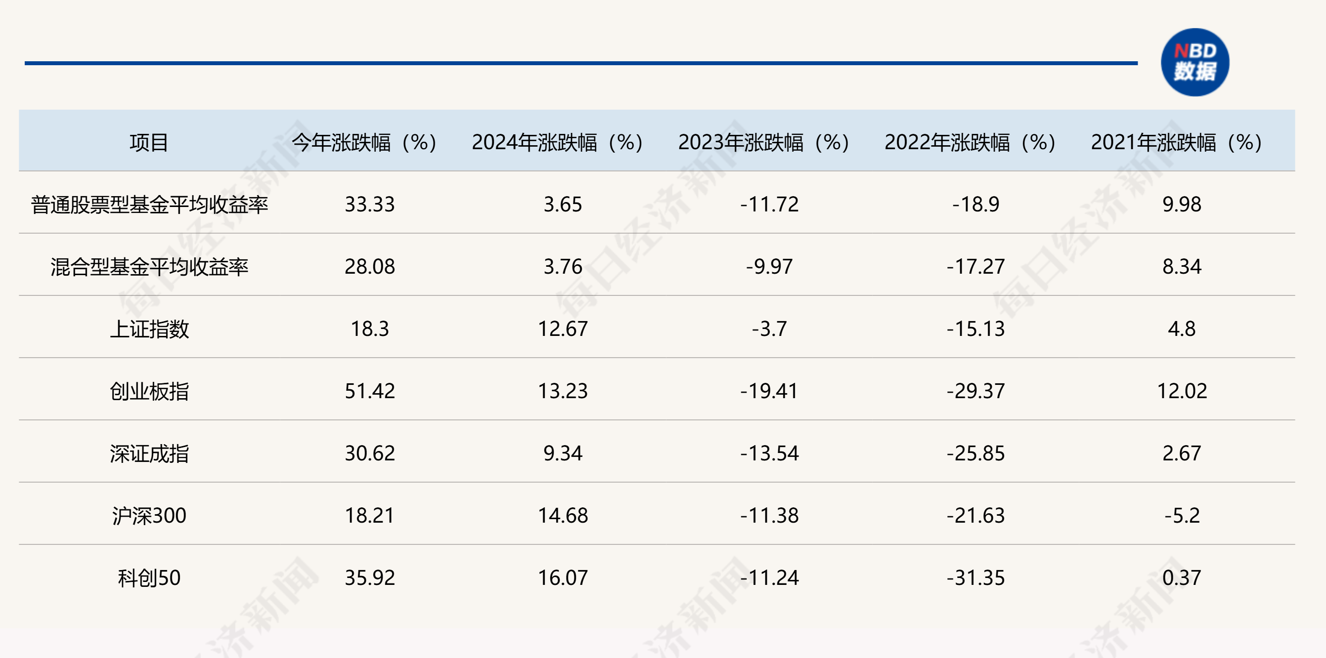 根据Wind数据,全市场有可比数据的969只普通股票型基金,在2025年的平均收益率为33.33%,交出了一份亮眼的年度成绩单。