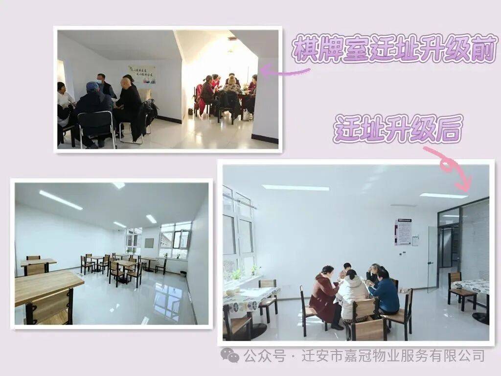 晨曦家园联谊中心——业主娱乐活动中心乔迁新址,环境升级,室内各项娱乐空间更加宽敞明亮。