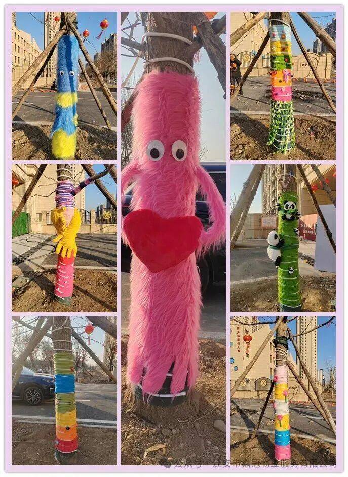 巧手编织梦幻色彩,绒绒毛线轻轻裹住庭前的树干盎然伸展,让原本萧瑟的枝桠漾起温柔的生机。包住冰冷的路灯铁杆,让金属的清凛荡然无存。那缀在衣间的小动物,眉眼蕴生机、灵动至极,家园处处充满暖爱与生气。