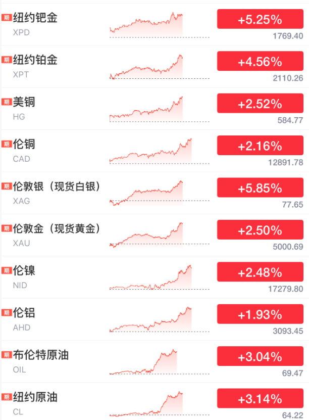 18日晚间,除了股市之外,原油暴涨3%,贵金属全线美元/盎司,现货白银暴涨约6%。