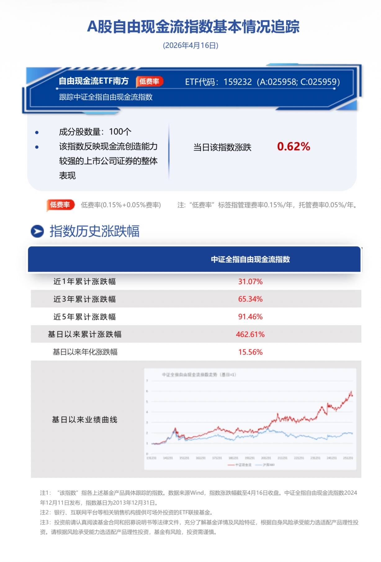 2026-04-16华体会,华体会体育官网,华体会体育,华体会体育APP下载在市场波动加大、风格轮动加快的环境下,企业真实经营质量的重要性进一步提升。相较利润,自由现金流更能反映企业在经营与资本开支之后真正留下的“现金余量”,是观察安全边际、经营韧性和股东回报能力的重要指标。自由现金流ETF南方(159232)聚焦A股中现金流质量较优的上市公司,帮助投资者以指数化方式把握高质量资产的长期配置价值。