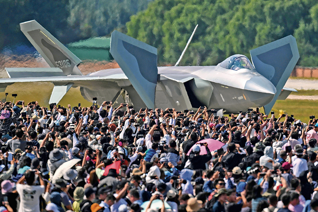 2025年空军航空开放活动和长春航空展上,歼-20飞机飞行表演归来,观众纷纷拍照留影。余红春摄