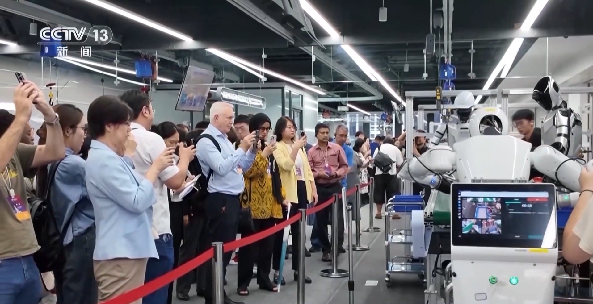 在位于上海浦东新区的“国家地方共建人形机器人创新中心”,外国专家学者们近距离观看了机器人的各项操作,用镜头记录所见所闻,感受未来智能的魅力。