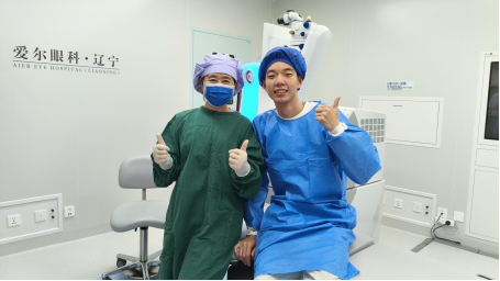 2025年5月15日,方学军完成了东北首例全飞秒SMILE pro近视手术。图为与患者的术后合影。