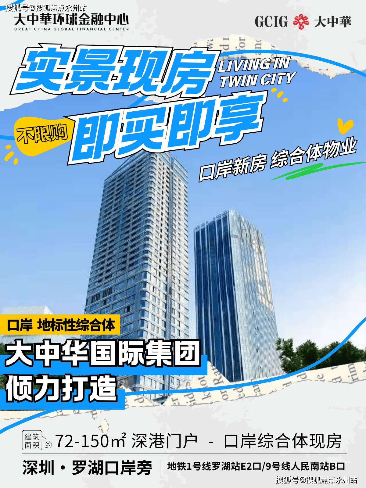 【大中华环球金融中心】深港融合头排资产 湾区枢纽标志建筑,北部都会,双城C位,红本现楼,建面约63-150㎡灵动LOFT,建面约71-142㎡总裁公寓,建面约98-2168㎡甲级写字楼。(深圳罗湖大中华环球金融中心售楼处官方电话:)