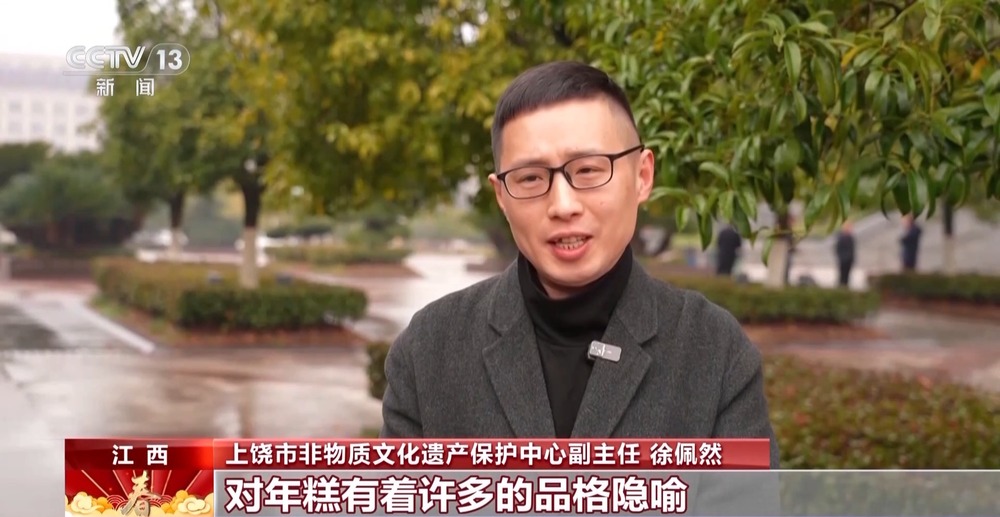 江西省上饶市非物质文化遗产保护中心副主任 徐佩然:在弋阳民间,对年糕有着许多的品格隐喻。比如,年糕本性素淡,但无论与青菜同炒,还是加入高汤同煮,都能保留自己的弹性,这种清白立世、兼容而不失本真的特质,被弋阳人比作君子之德。它能在甜咸荤素间游刃有余,恰如中国人处世的智慧,和而不同,糯而不糜。