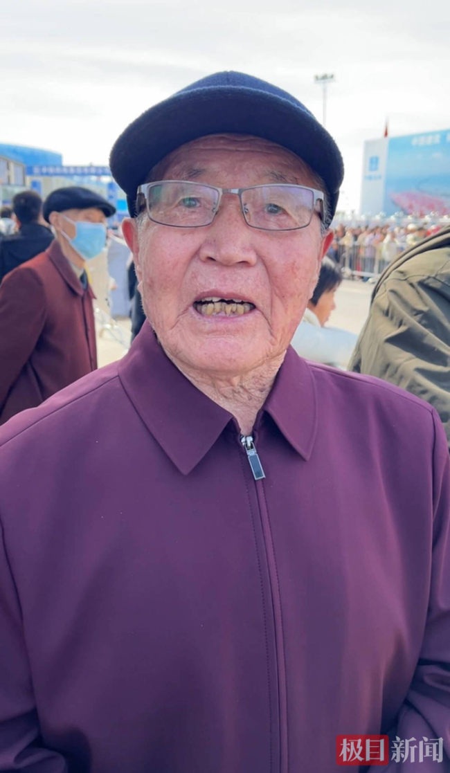 李际纯来自山东荣成,1956年报名参军后加入海军某部,起初在快艇支队的靶场担任记录员,后来调入一艘猎潜艇并成为一名保卫干事。他回忆起自己当年所在的艇排水量不足300吨,而如今的军舰与之相比有了巨大进步,这让他感到自豪和高兴。站在码头上,李际纯深情地说:“人民海军,生日快乐。”