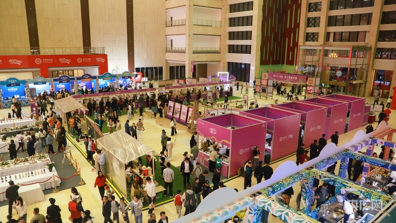 启动仪式后,兰傒谷商务广场五大主题市集同步开放。4月28日至5月2日,中华美食集锦、世界美食体验、风土微醺、塞上风味、丝路生活五大市集共设155个展位,汇聚全国八大菜系、35家中华老字号与非遗展商、20国异域美食,以及宁夏滩羊、枸杞、牛奶等特色物产:“风土微醺市集”上,贺兰山东麓知名酒庄集体亮相,全品类葡萄酒供免费品鉴;“塞上风味市集”中,“名羊天下”等展区人气爆棚,现场烹饪的滩羊肉香气四溢,食客排起长队争相品尝。